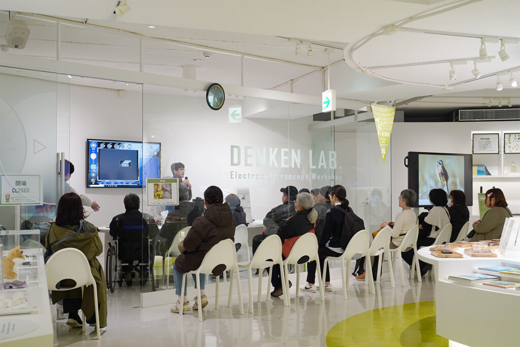 当館1階自然ゾーンに電子顕微鏡が設置された部屋「でんけんラボ」があります。