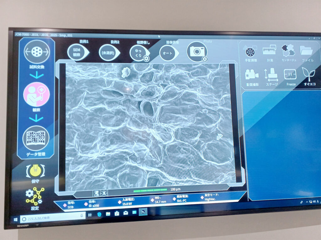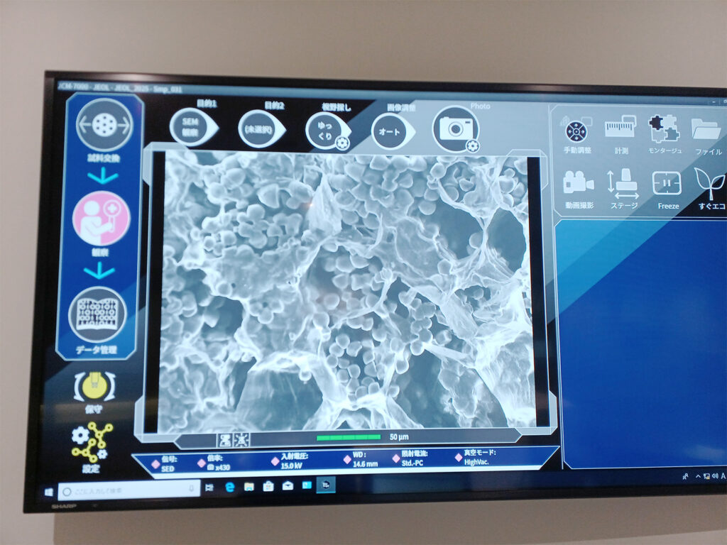 団体様は事前予約いただくことで、最大1万倍まで拡大することができる電子顕微鏡を使った特別解説を体験いただくことができます。
