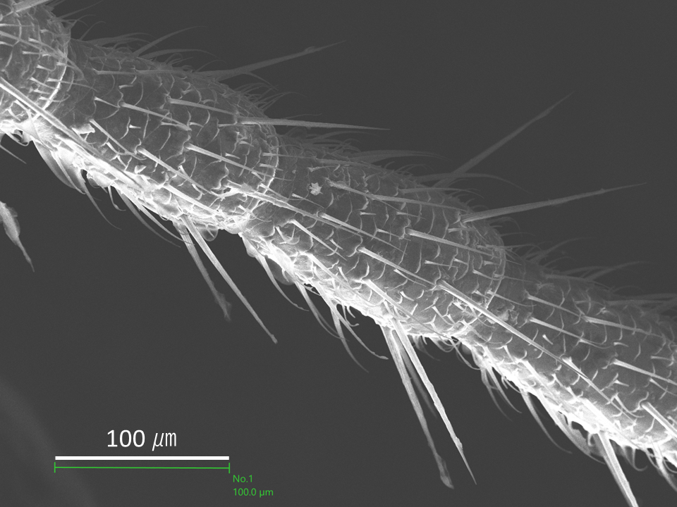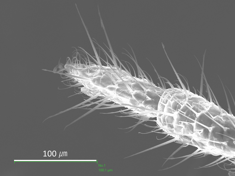 ヒメクロゴキブリの尾毛 (撮影:当館イベント参加者)