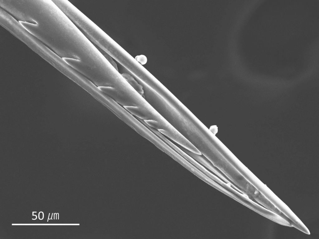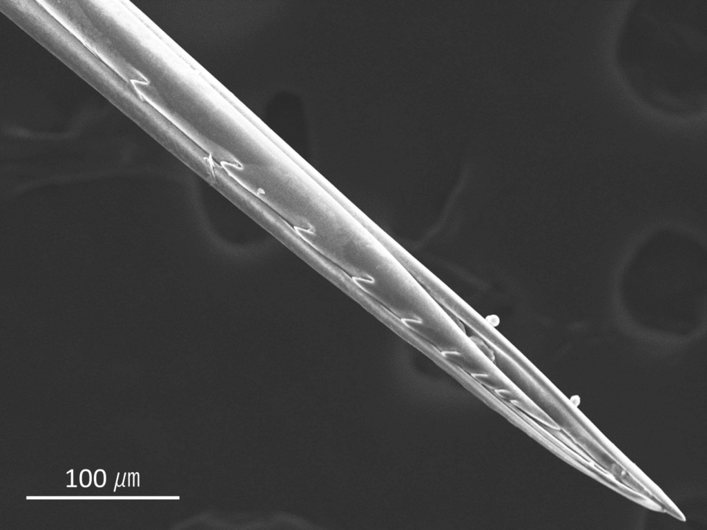 セイヨウミツバチ雌の毒針 (撮影:科学館職員)