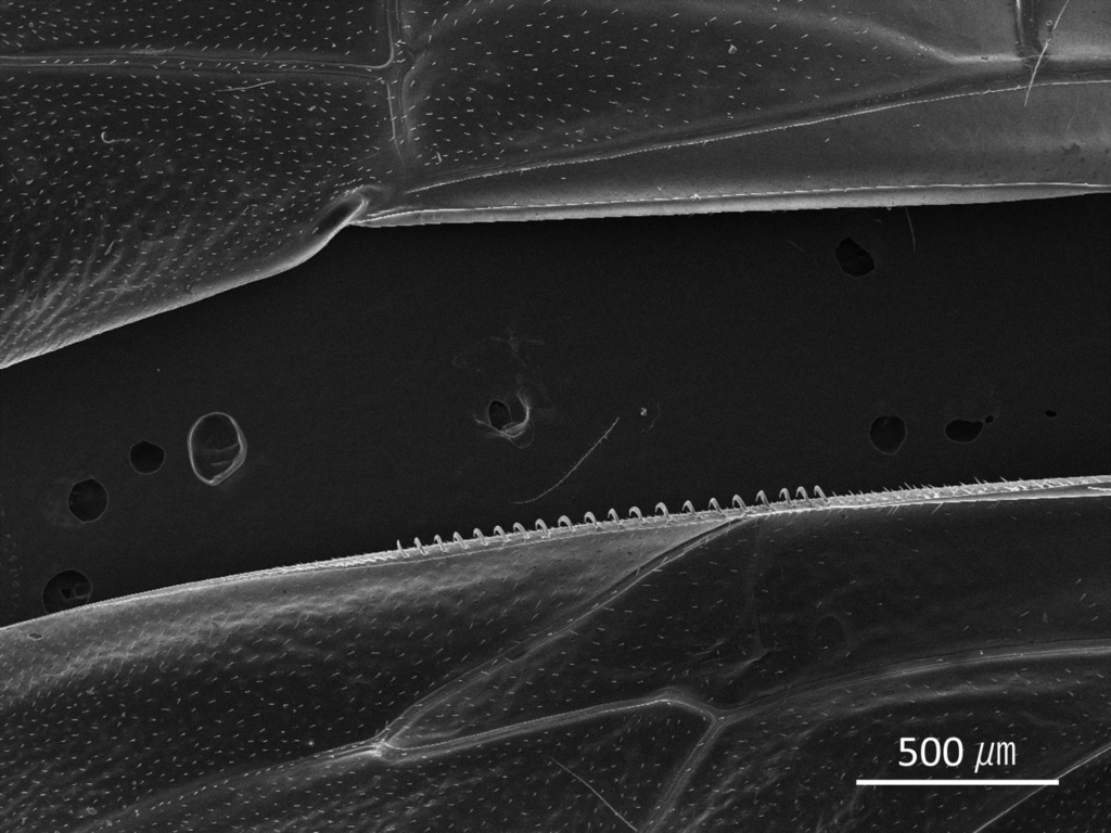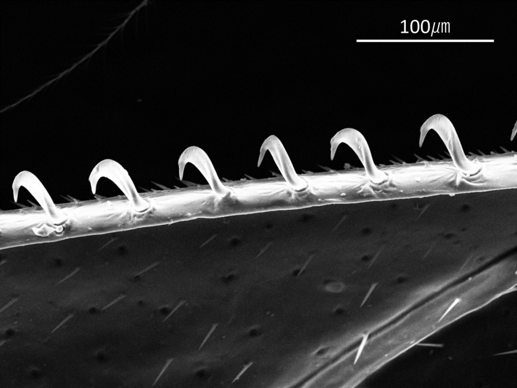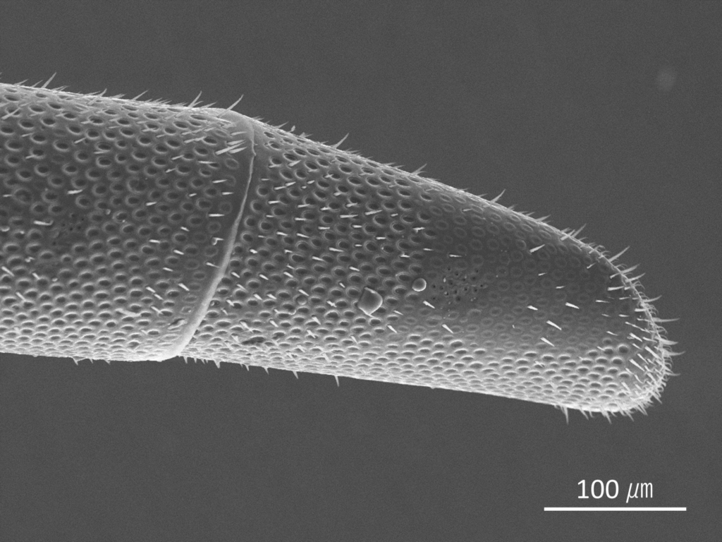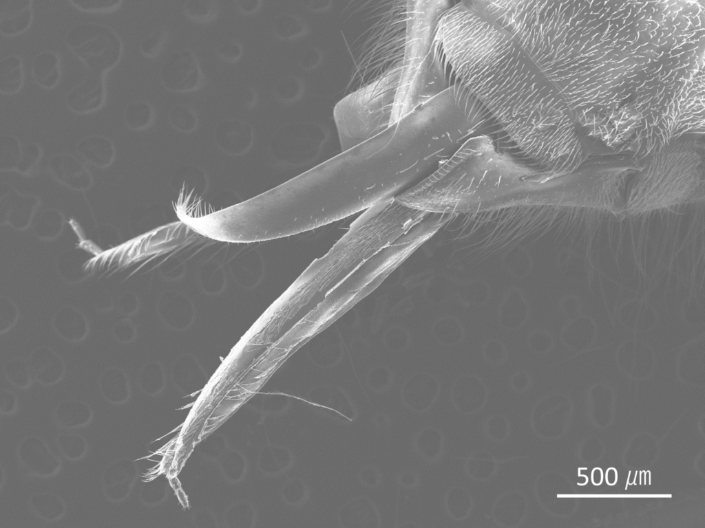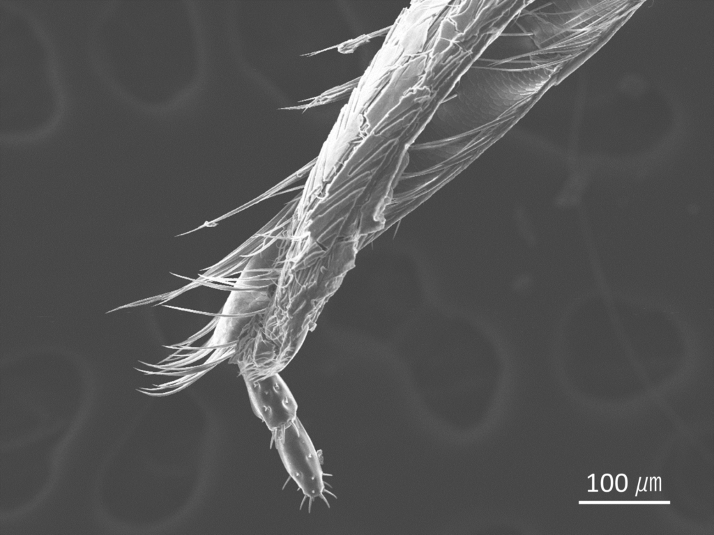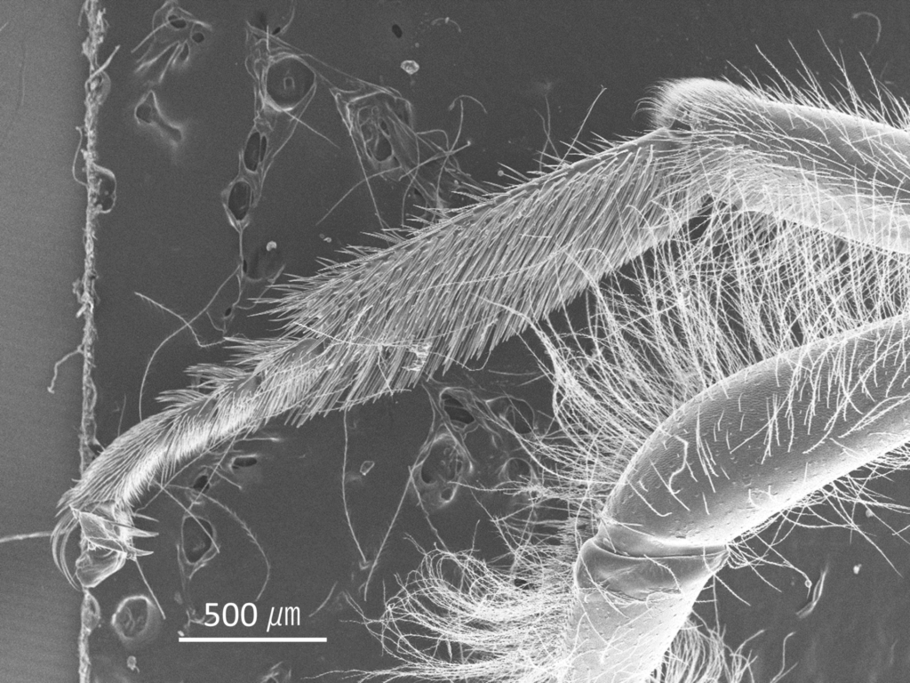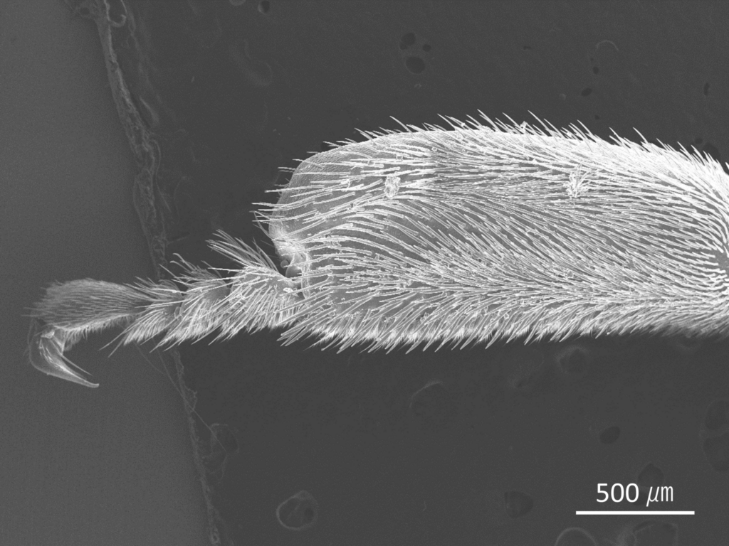 セイヨウミツバチ雌の中脚 (撮影:科学館職員)