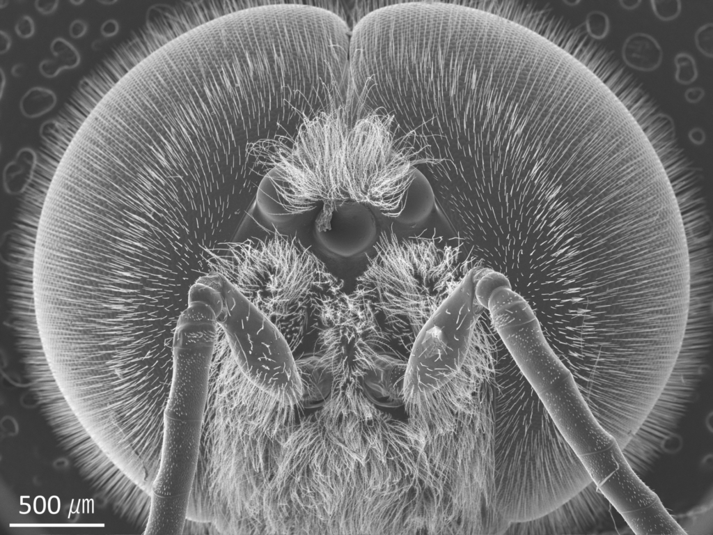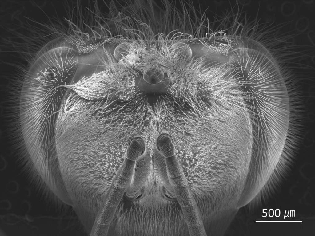 セイヨウミツバチ雄の頭部 (撮影:科学館職員)