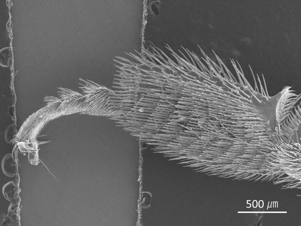 セイヨウミツバチ雄の後脚 (撮影:科学館職員)