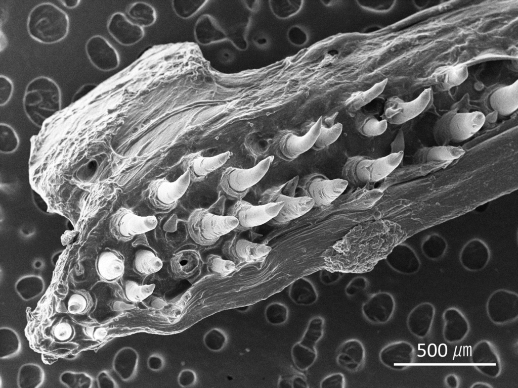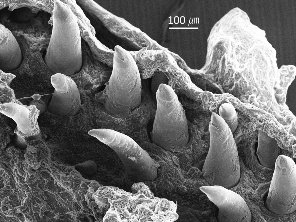ニホンウナギの上顎 (撮影:科学館職員) ニホンウナギの下顎 (撮影:科学館職員) ニホンウナギの上皮 (撮影:科学館職員) ニホンウナギの鱗 (撮影:科学館職員) ニホンウナギの鱗 (撮影:科学館職員) ニホンウナギの上皮 (撮影:科学館職員) ニホンウナギの耳石 (撮影:科学館職員) ニホンウナギの耳石 (撮影:科学館職員) ニホンウナギの耳石の断面 (撮影:科学館職員) 試料提供:浜名湖体験学習施設ウォット 関連記事