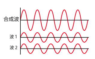 音は波の性質をもっています。そのため、2つの音の波が重なり合うと、「干渉」と呼ばれる現象がおこります。音の「重ね合わせ」の原理とも呼ばれます。