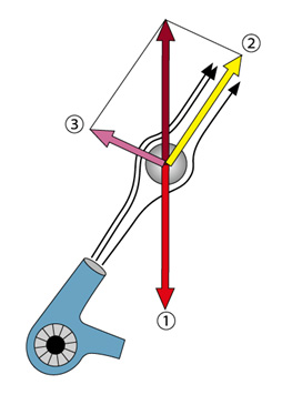 ボールがふき出す風の中で浮かんだり、風の角度をななめにしても落ちないのは、図1のような力のつり合いによるからです。