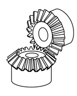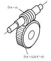 後者の代表的な歯車に、「かさ歯車」(図2)や「ウォームギア」(図3)があります。かさ歯車は、円すい型の歯車で、交わる二軸間に動力を伝えます。ウォームギアは、ねじ状の歯数の少ない方をウォーム、ウォームにかみ合う部分をウォームホイールといい、ウォームとウォームホイールからなる歯車のことをいいます。